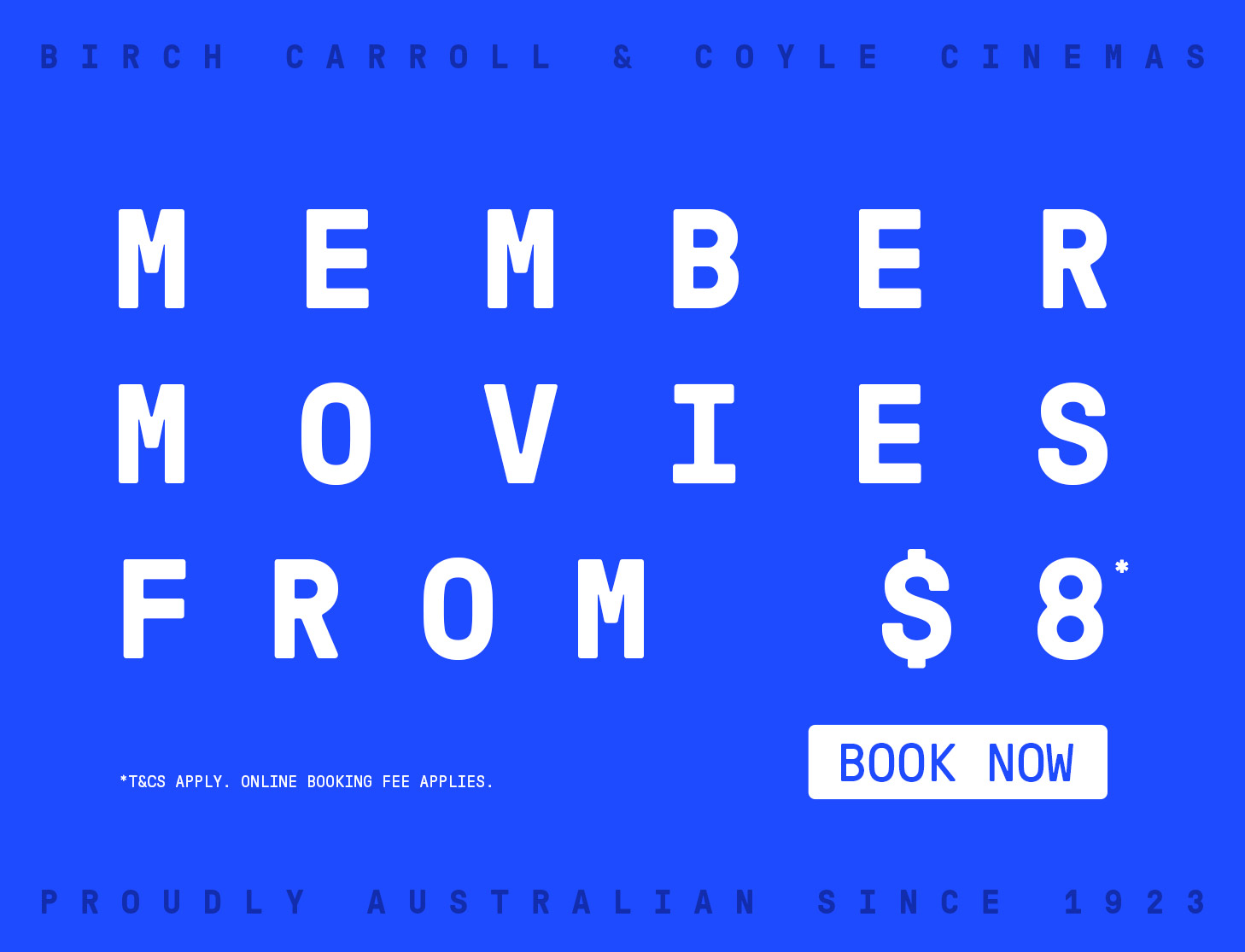 Cinebuzz members can save all-day with our special $8* member tickets.